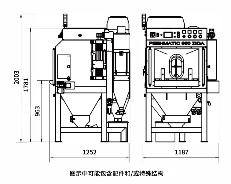 喷砂设备PEENMATIC950ZIDA-SAT是专为柱形工件设计的自动化喷砂设备。 可加工柱形工件尺寸为:Ø80mm x 高150mm =3个喷嘴安装于一纵轴上,在加工过程中会按照设定好的速度和行程运行
