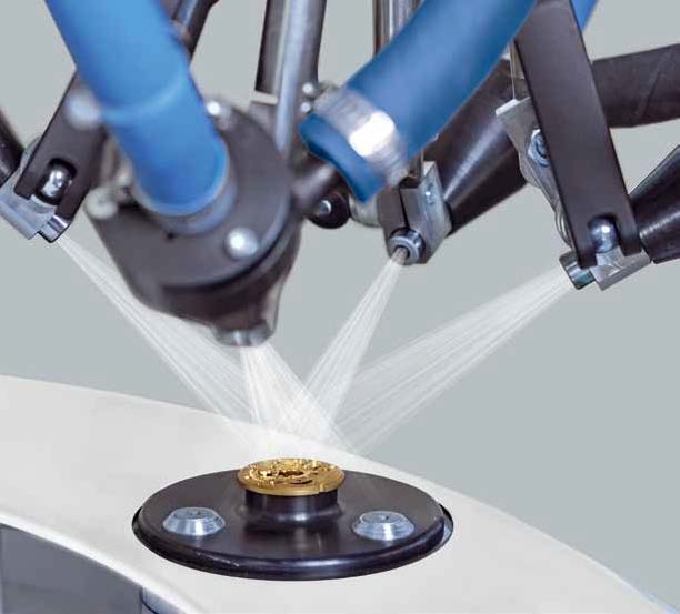 设备由一个带旋转工作台和八个工件站的独立喷砂系统组成。 每个工作台位置最多可安装四个可单独编程的喷嘴。 喷砂过程结束后,工件会被小心翼翼地吹掉,以便从零件夹具中无尘取出。