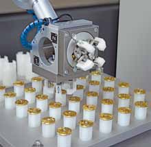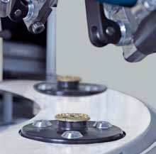 机器人正在装载和卸载微型喷砂系统的旋转台。 |