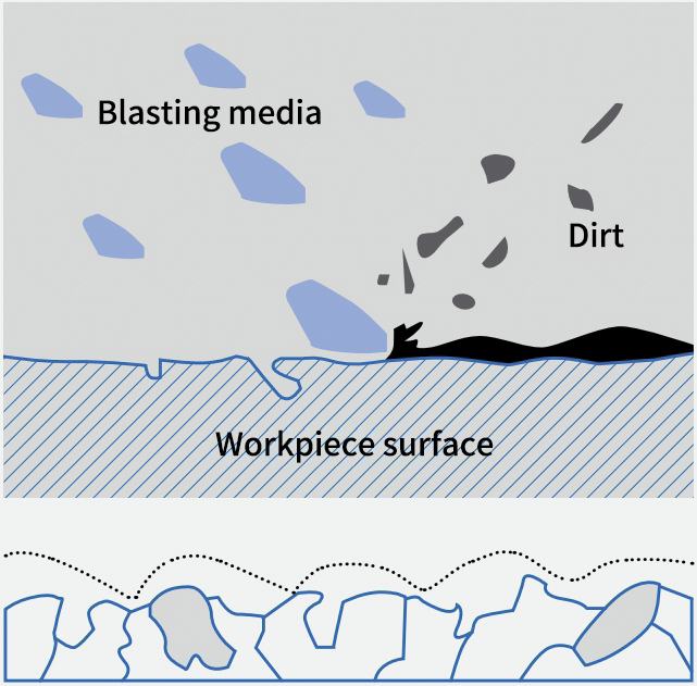 这是一种干式微喷砂方法,使用规定的喷砂介质(颗粒大小、颗粒硬度和颗粒几何形状),以各种形式和质量对表面的微观拓扑图产生积极影响。
