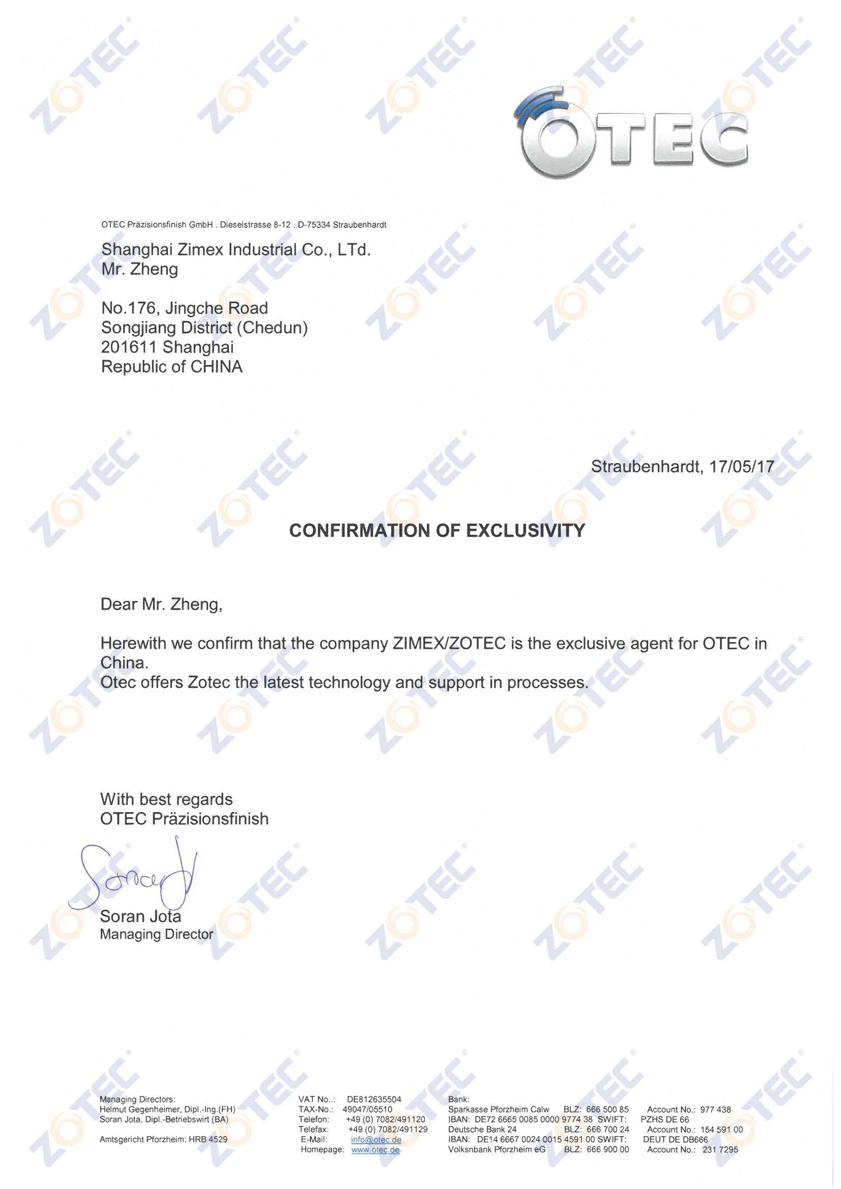 德国 Otec 公司是一家年轻的高新科技企业,公司在研磨、抛光加工领域拥有多项性技术,包括托盘离心技术和陶瓷环有缝隙、无缝隙系统等。目前, Otec 公司的产品主要有如下系列品种:Eco系列托盘离心式研磨抛光机,CF-T系列托盘式研磨抛光机,CF 系列托盘离心式研磨抛光机和DF系列拖曳式抛光机以及超过300种的研磨抛光用磨料和溶液、抛光膏等。主要应用于首饰、钟表配件、织针以及其他小型冲压件等的去毛刺和高要求抛光加工。