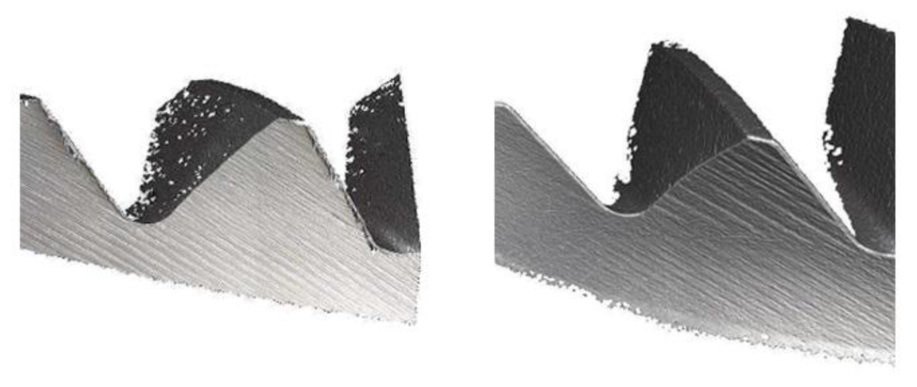 此外,佐技可以将切削刃的刃口处理到确定的圆弧钝化值。通过设置容器和工件转速以及浸没参数角度,可以改进丝锥的几何结构,以匹配要求的形状。